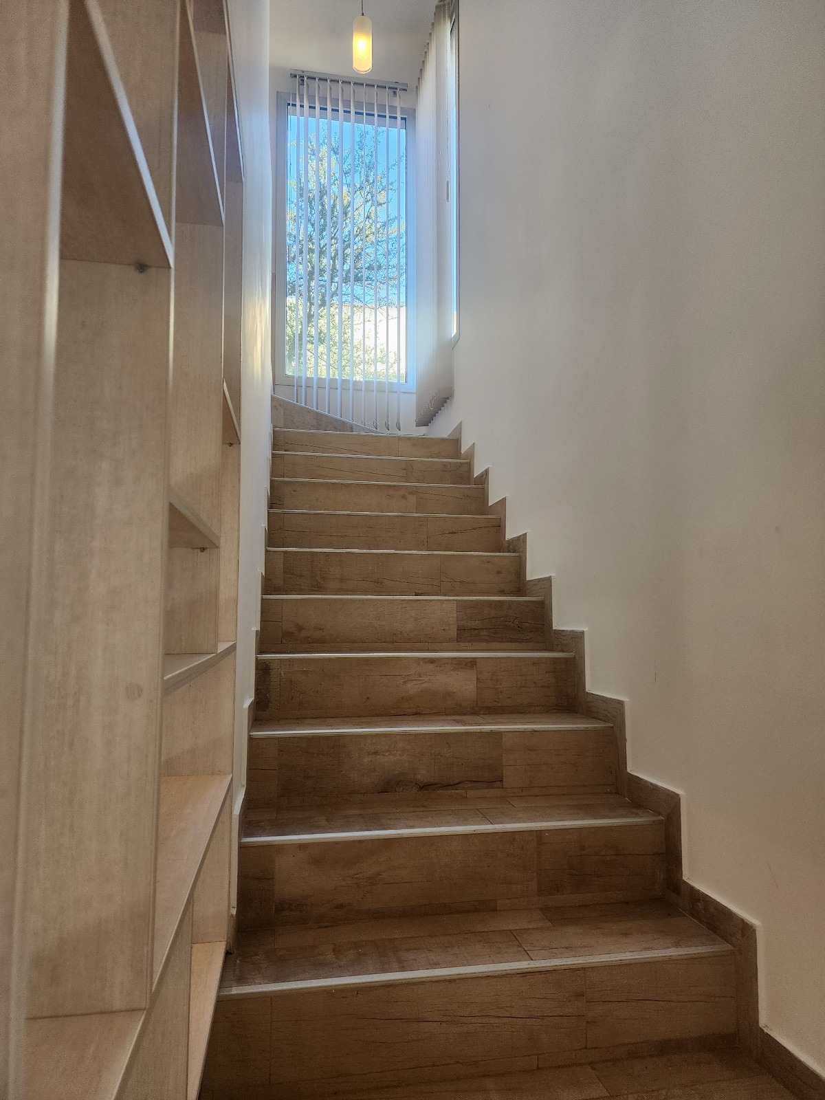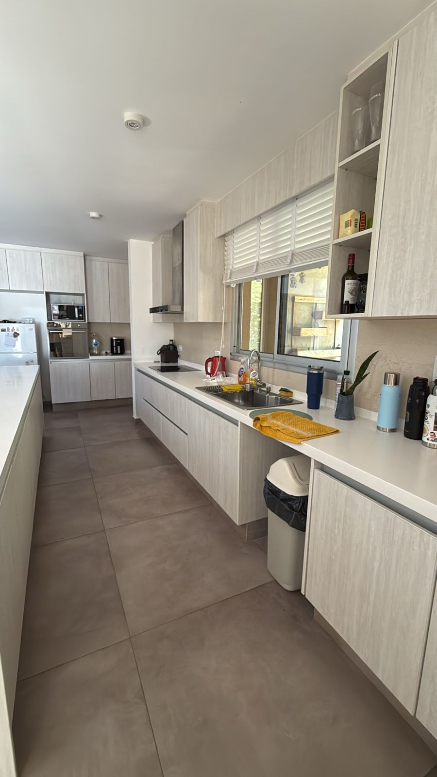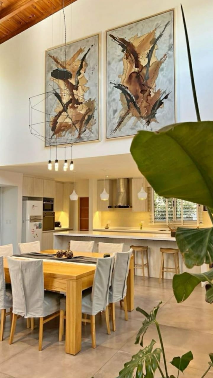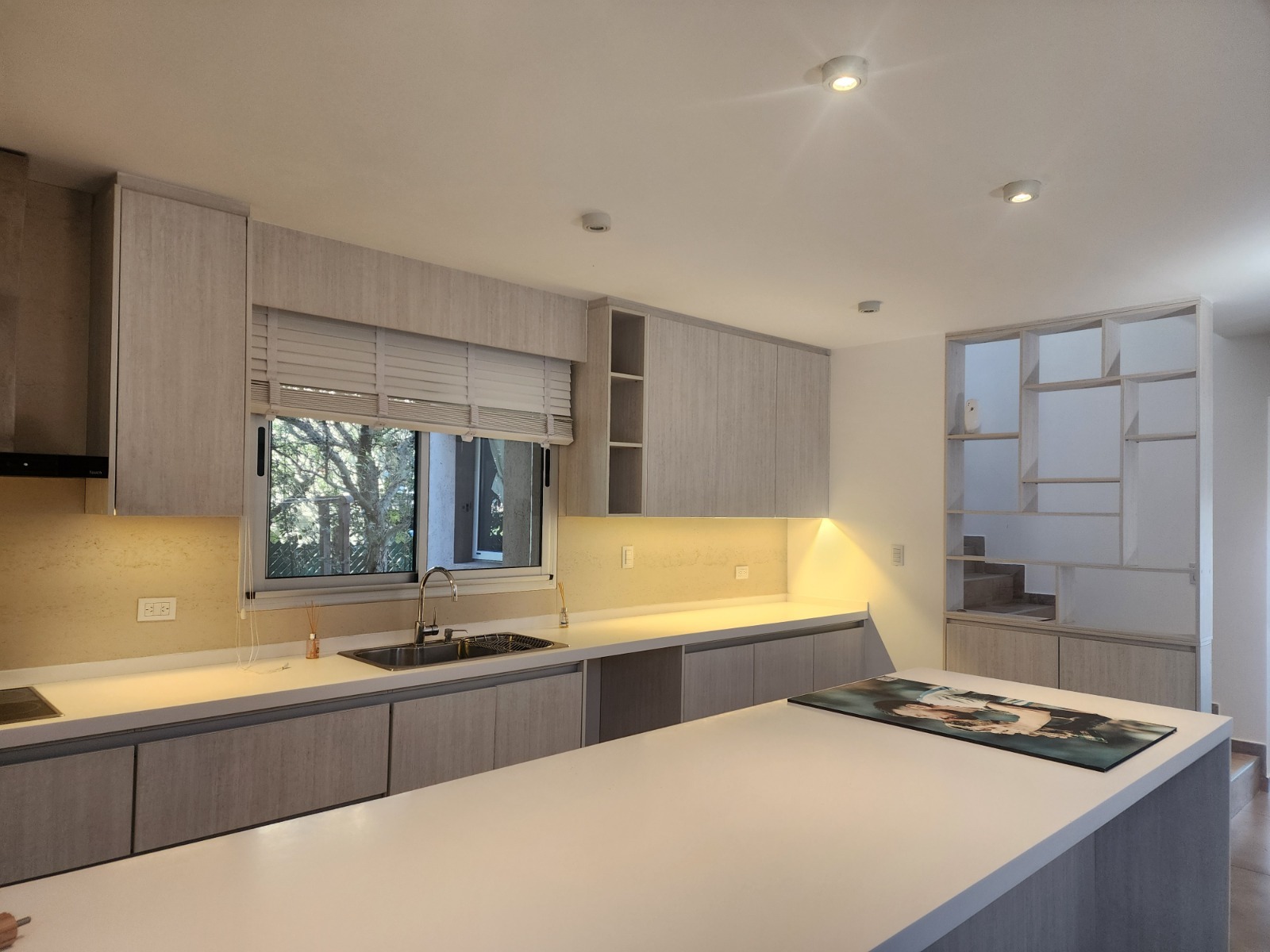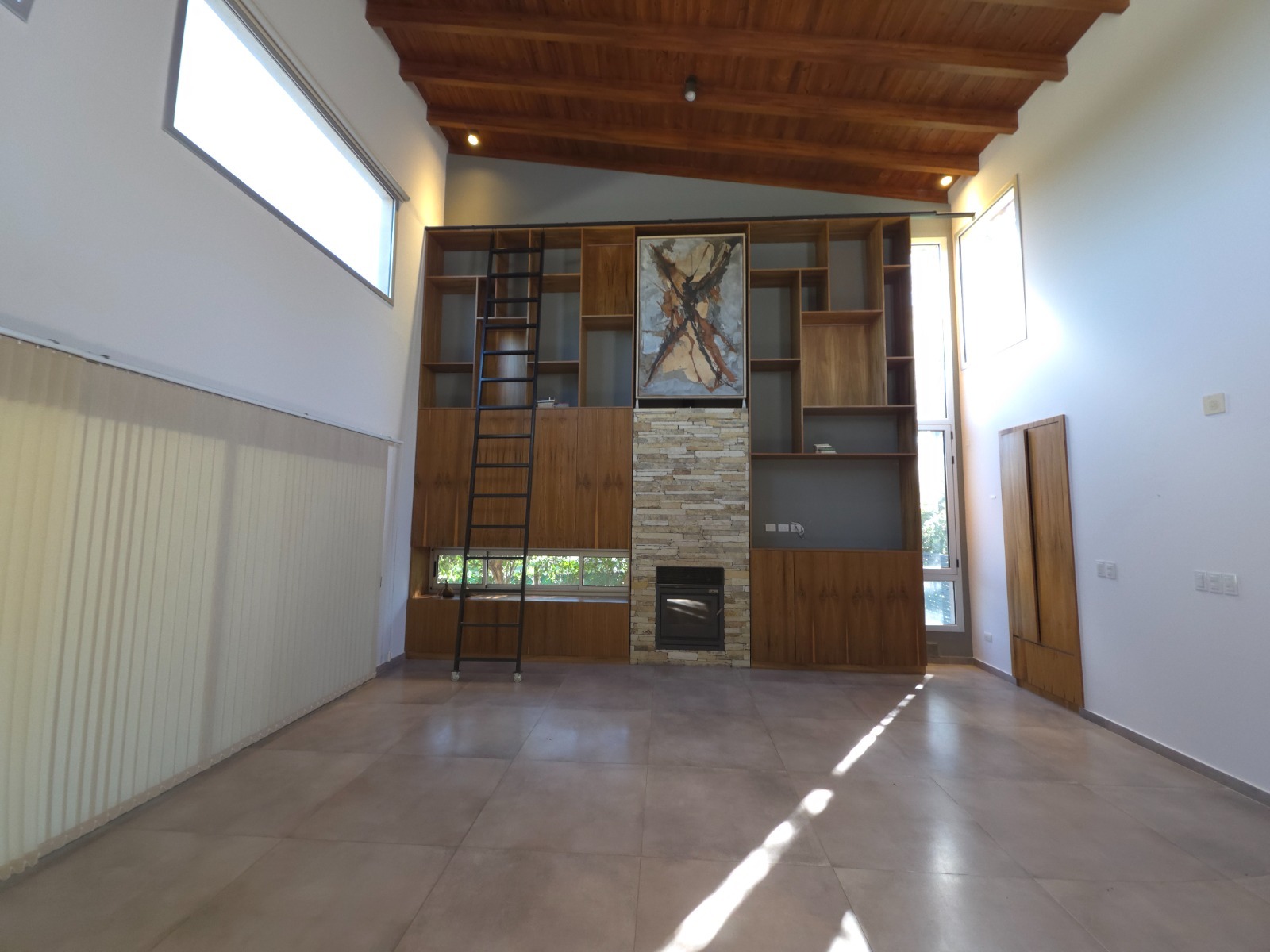 La propiedad se distribuye en los siguientes ambientes: living comedor de gran tamaño con isla, cocina de estilo moderno con la cocina de cocinar digital con campana y mobiliario de melamina, 2 dormitorios (proyecto para un tercer dormitorio aprobado), 3 baños, quincho techado con asador y anafe, cochera para dos vehículos y lavadero
