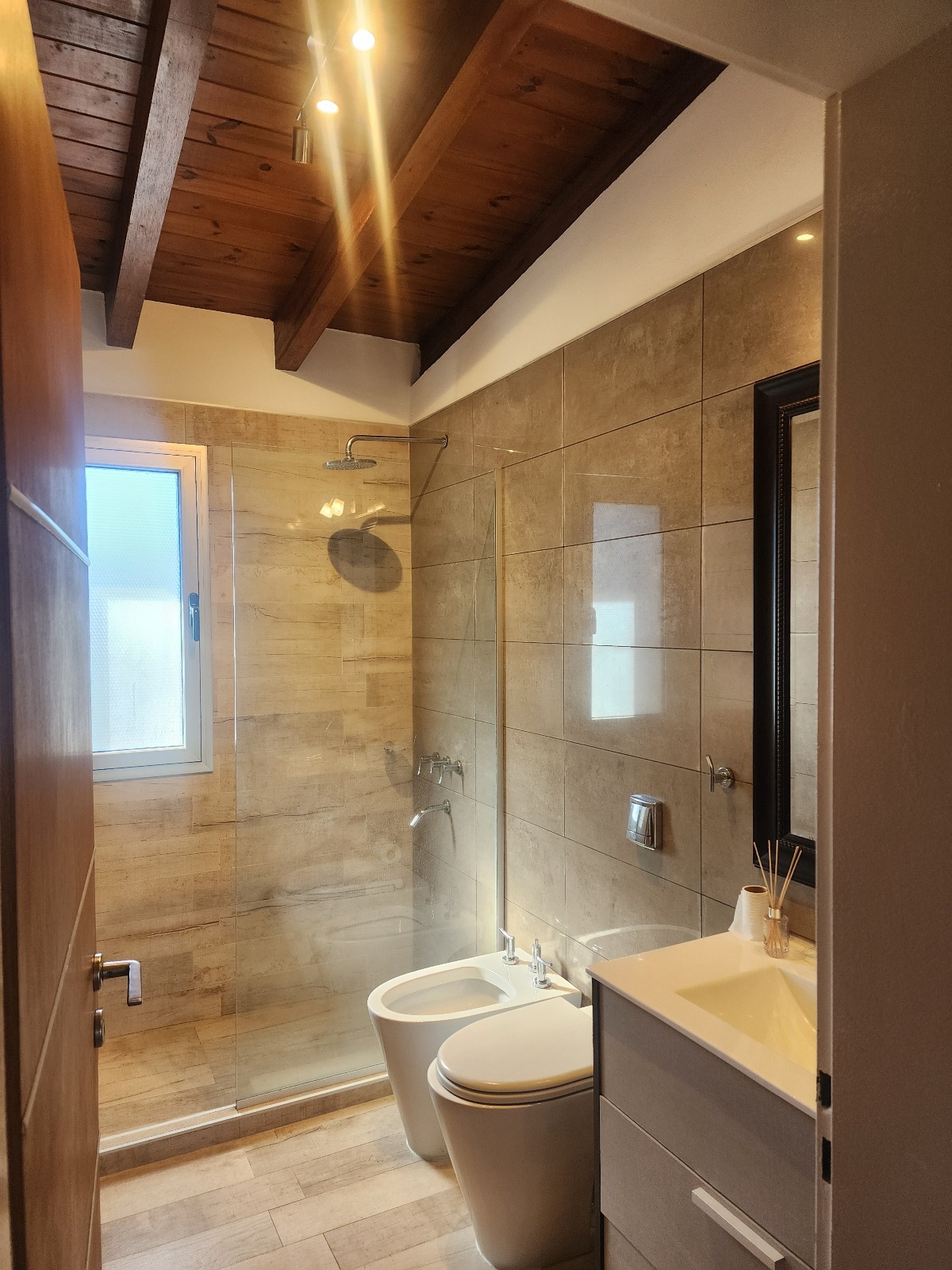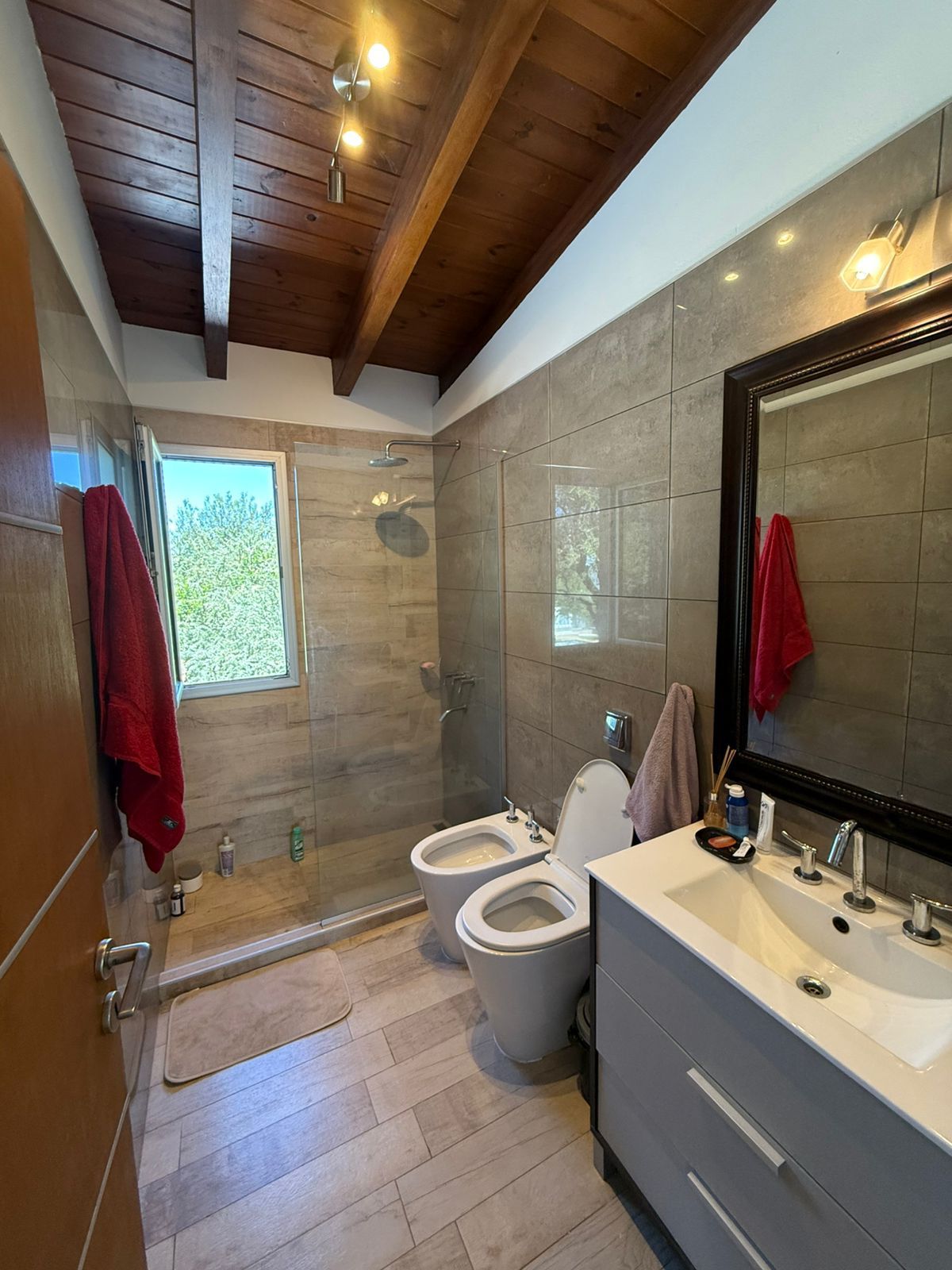 La calidad constructiva es excelente con aberturas de aluminio con vidrio doble y cortinas automatizadas con manejo por controles, pisos porcelanato con losa radiante para calefaccionar, techo de losa y techo de chapa con aislante revestido con madera. Tiene cámara séptica y pozo negro destinado a desechos cloacales.